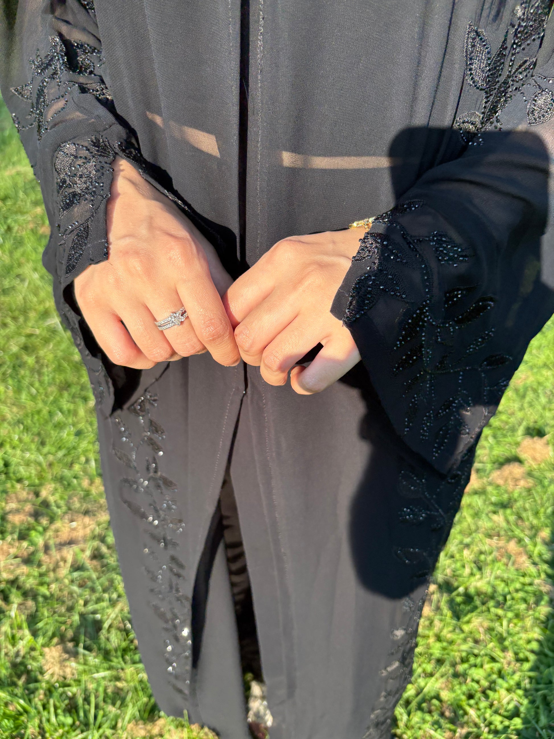 The Ruhi chiffon Abaya is a beautiful blend of minimalism and delicate detailing. Designed with elegance in mind, this abaya features intricate accents that add a graceful, feminine touch without overwhelming the clean, straight-cut silhouette. Perfect for special occasions or refined everyday wear, it’s a timeless piece that effortlessly enhances your modest wardrobe.